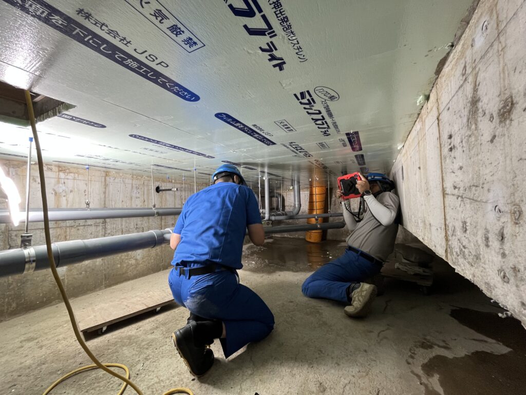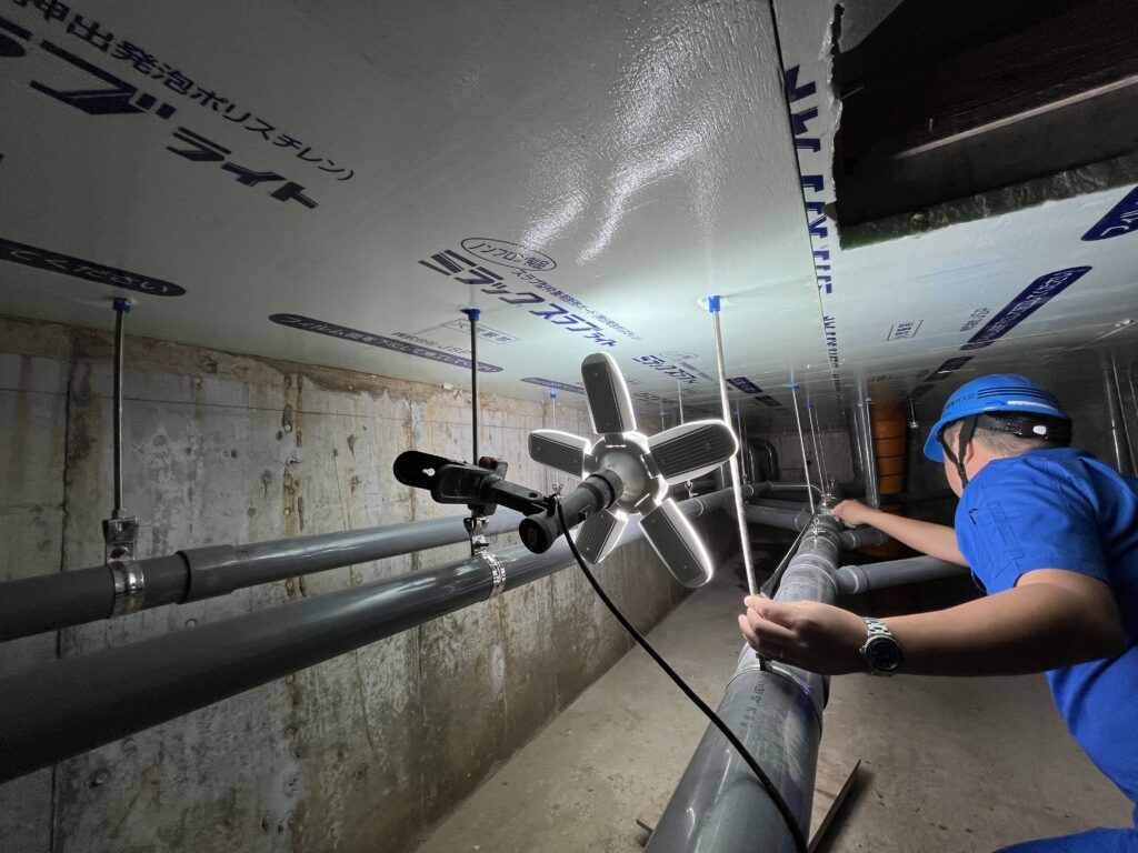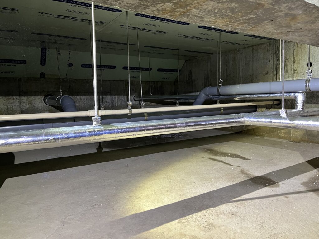 ピット内配管の吊りピッチの確認、酸素濃度測定(硫化水素も同時に測定)、送風機の点検など行いました。