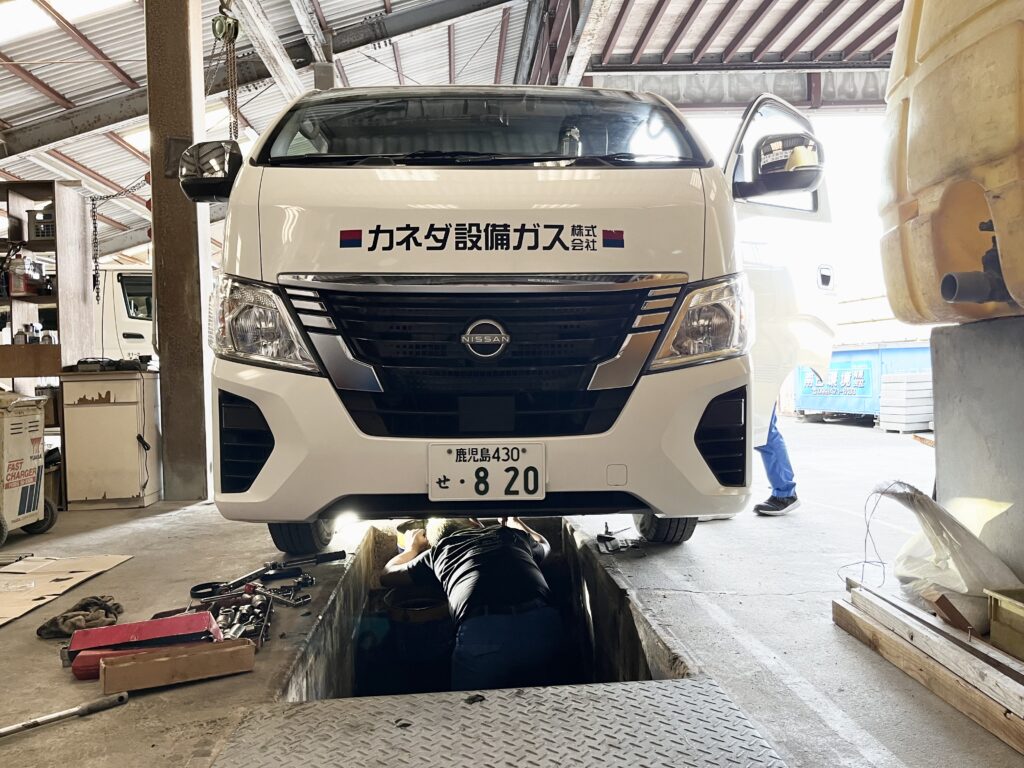 カネダ設備ガスでは、社員それぞれに担当車両が割り当てられており、オイル交換等の管理を各自で行っています。
