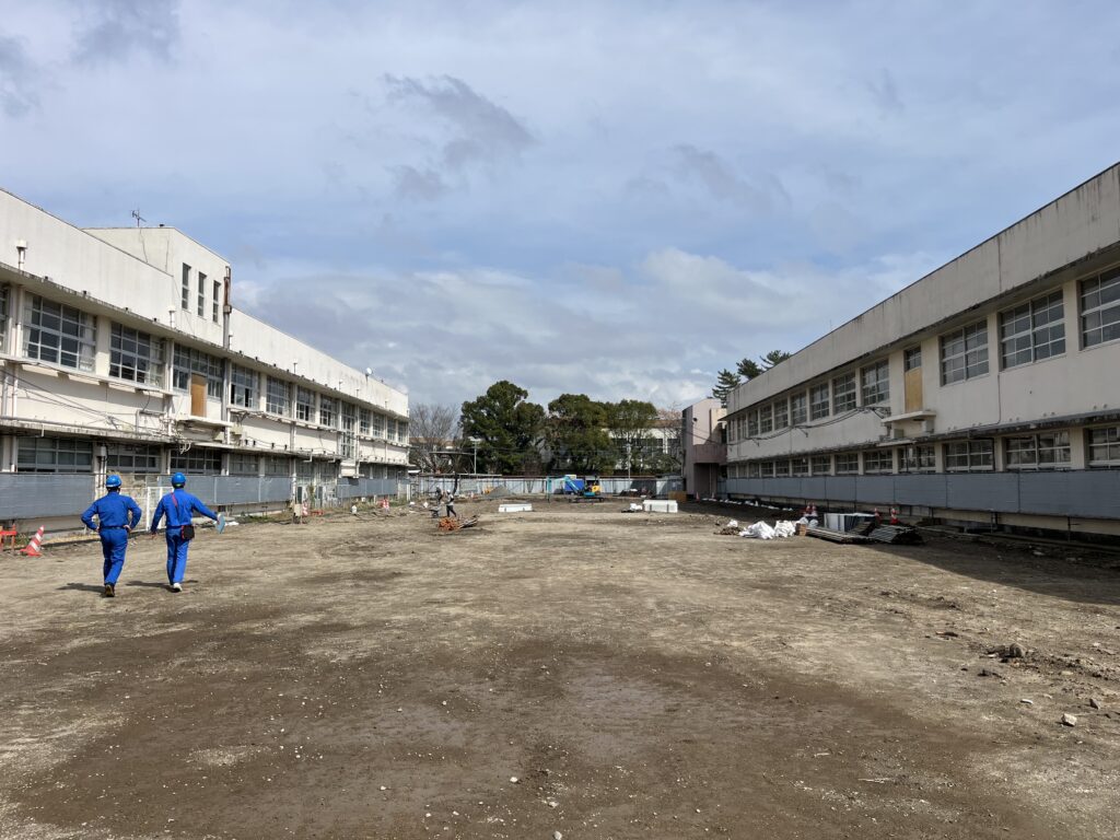 今はまっさらですが、この場所に4階建ての新しい校舎が建築されていきます。
