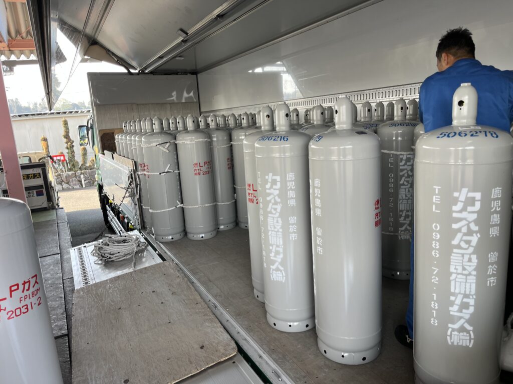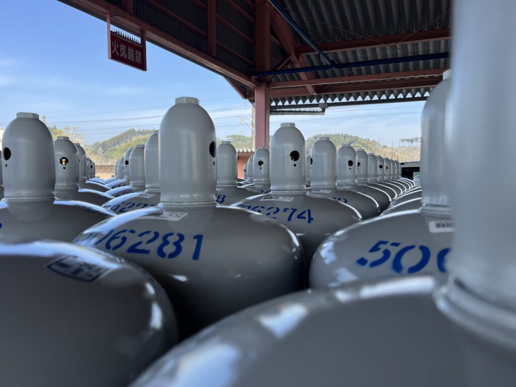 令和8年度に向けて、新容器を100本入荷しました。ガス部で協力して充填作業を行っています!