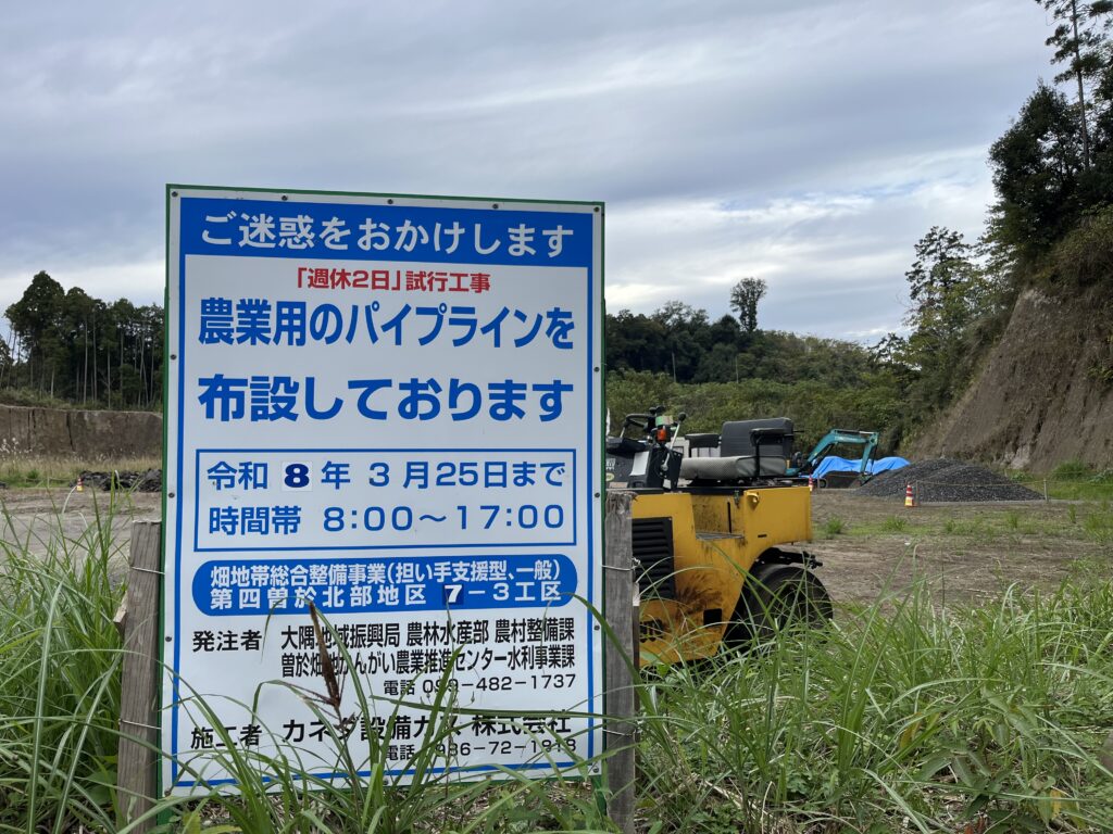 現場は少し移動し、畑かんの配管布設工事が始まります。引き続き安全第一で施工いたします‼