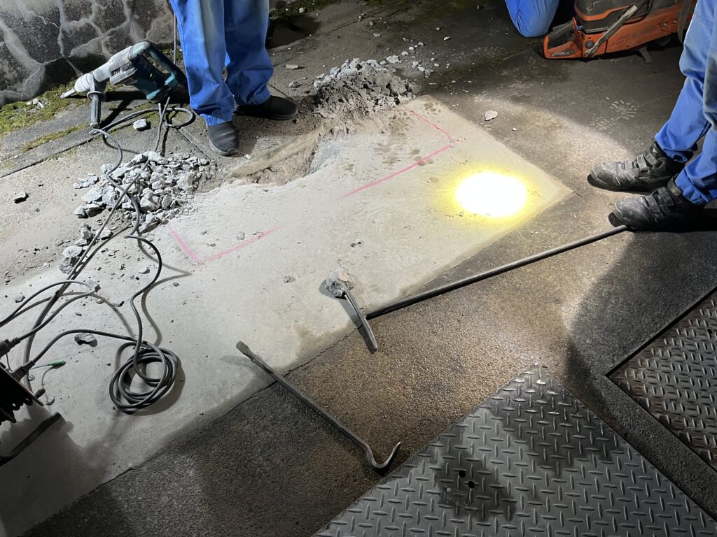 各現場をストップして修理に駆け付け、即対応で修理完了しました。夜間作業になりましたが、事故・怪我無く完了して何よりでした。